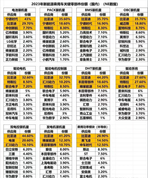 比亚迪为什么强无敌,看看新能源关键零部件的市场份额就知道了