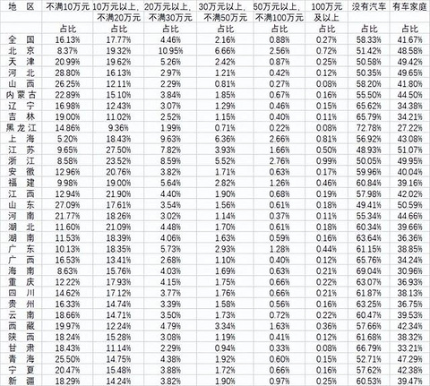 网络人均法拉利?数据:开20万元的汽车,超80%的家庭