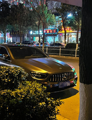昨晚吃饭回来路边遇到一辆新E,贴了哑光改色膜,换了amg中网,感觉颜值真的顶,立标版本确实不如上代,大标版还是很能打的
