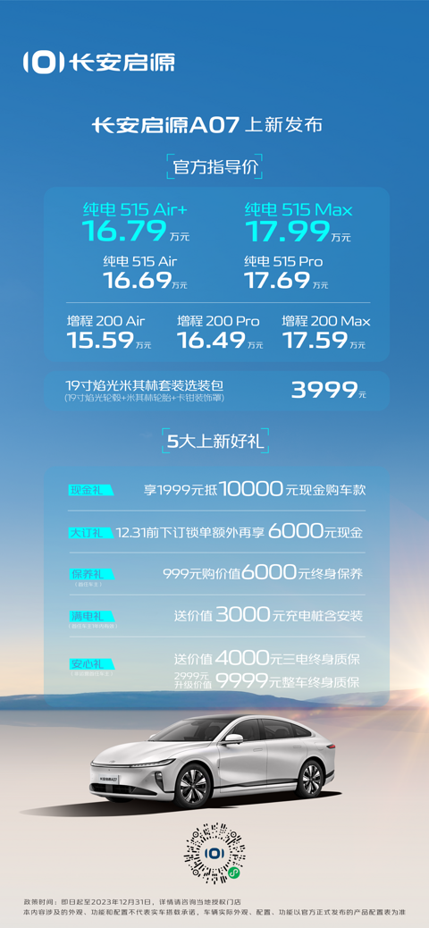 #长安启源Q05上市价11.99万元起 #长安启源A07上新舒享配置 更有五大跃迁好礼 即刻下订,悦享美好生活
