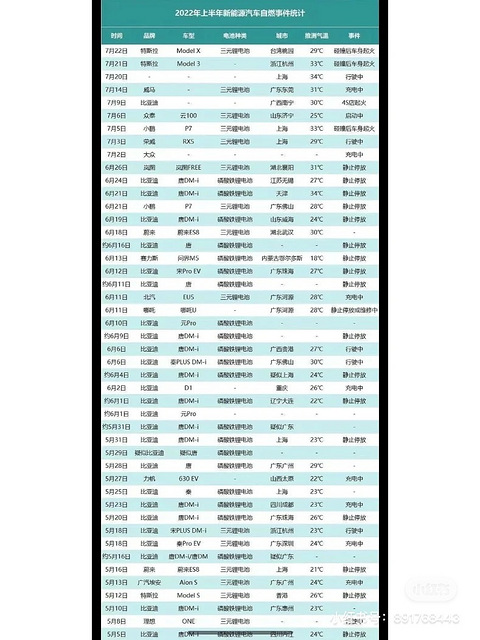 2022年上半年新能源车自燃事件统计,你们猜哪个牌子最多?
