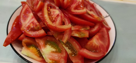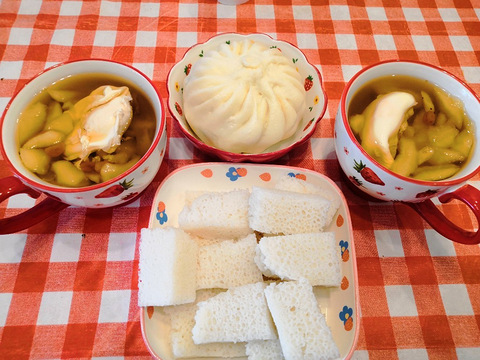 准备晚饭中,懒得煮饭,买了2个馒头当主食