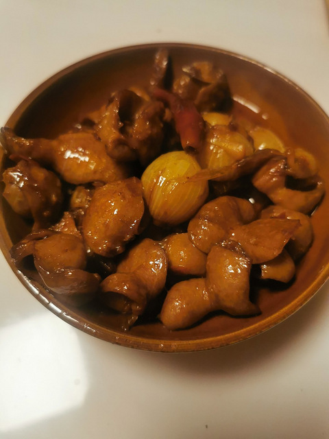 继续搞点吃的,其实我也没这样弄过,本来想搞个香辣蹄筋,发现嘴头得溃疡还没好,算了,整个不辣的!!!试试就试试。。。前天卤得蹄筋,溜耙[ej=1F60D]整点去味增香三件套。开干。。热油爆香,加水,烧几分钟。搞定。卤得蹄筋有味了,所以啥子都没有放。。葱香浓郁。。。不辣,还可以。。。