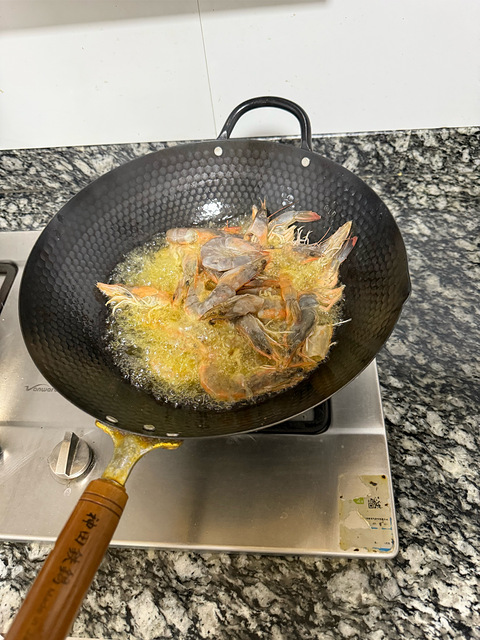 虾洗净开背,控干水,洒点玉米或者土豆粉量要少哈。油温七层,下虾炸熟。捞出来,油温8成复炸30秒,捞出备用。炸配菜,没什么讲究,喜欢吃啥子炸啥子,一样的少点玉米淀粉霍一下。藕,老婆喜欢吃,炸起。拇指年糕老婆喜欢吃,炸起。年糕提前开水泡两分钟,再裹点粉炸。留点油,下姜蒜炒香。下干辣椒花椒,老婆怕辣,我夹的子弹头辣椒。炒香。我用的两勺香辣酱和大约二分之一块小块的火锅底料。炒香,补点酱油。下虾。下洋葱和黄
