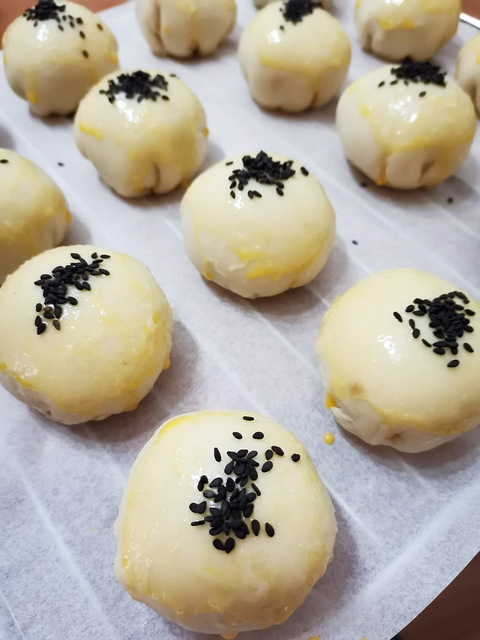 马上中秋节快到啦,我觉得蛋黄酥比月饼好吃,所以做点蛋黄酥送朋友亲戚(不卖哈),包的整颗咸蛋黄,每个蛋黄酥80克,超大个,比买的好吃太多。龙井茶口味的,好吃不甜腻。 再来个打包环节,每个蛋黄酥必须安排豪华单间[/11龇牙][/11龇牙]