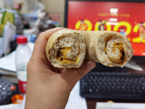 做全麦肉松贝果,馅是一定要最大程度的多裹一点的,烤出来胖乎乎,吃起来贼满足!作为上班族早餐也很方便,碳水+馅料,!食堂的包子馒头花卷实在是吃腻了