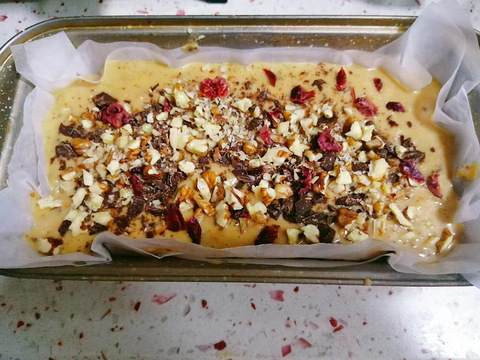昨天回家看到香蕉皮起点子了,再不吃又要浪费了,所以灵机一动就做了个香蕉蛋糕,超简单,但是超好吃,浓浓的香蕉味,加上核桃碎和蔓越莓,超满足!