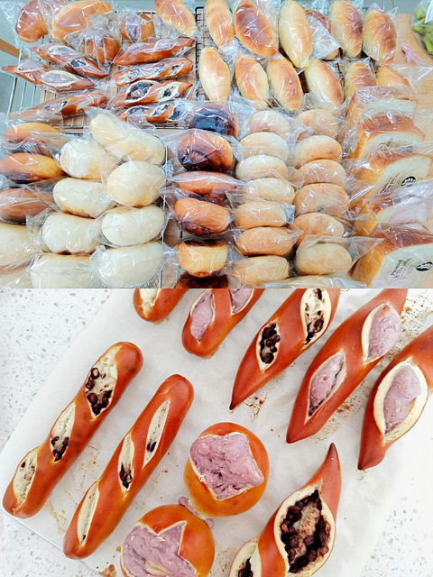 今日撸包 北海道吐司 2个无糖无油胚芽贝果 7个低糖无油芋泥贝果 8个肉桂卷10个、米面包10个红豆芋泥碱水 10个牛角盐面包 16个面粉和酵母都用完了[捂脸]撸包一天比上班还累[ej=1F62D][ej=1F62D]
