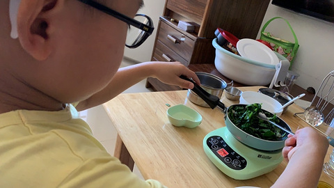 儿子7岁,不喜欢运动,不爱读书,对艺术不感冒。就喜欢做饭。刚学走路的时候就喜欢把家里的各种锅搬到沙发上摆一排;后来喜欢厨房玩具,模仿视频里的炒菜样子做菜;对抖音里收藏的食谱介绍视频倒背如流;家人炒菜务必到场旁观并介绍做饭,放盐、放花椒、放酱油…;最近入手一套就迷你真煮厨房玩具,真刀真枪地开始炒菜,暑假的时候天天很早起来自己拿出头一天切好的胡萝卜丁开始炒来吃,吃得津津有味。希望送他去个儿童厨艺训练班