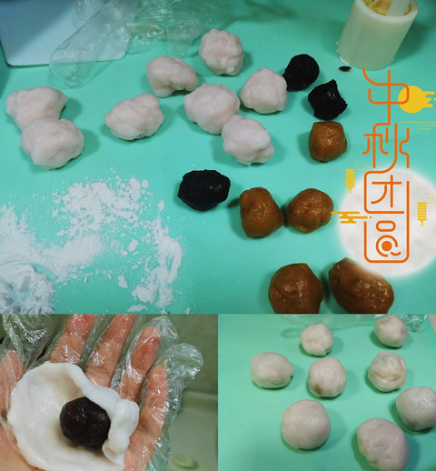 家里烤箱是迷你版的不好弄,只能搞个不需要烤箱的冰皮月饼。粗鲁版的冰皮月饼:1、揉面:把预拌粉和开水以1∶1的比例混合,揉揉揉...2、搓团:把揉好的面分成大概25-30g的小团,压扁成面皮,馅料也搓成小团包到面皮里,就像包汤圆一样。3、压模:包好以后直接放模具里压成型就ok啦。