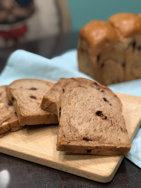 布鲁塞尔吐司,可可面包体内含巧克力核桃柚皮丝,口感丰富…