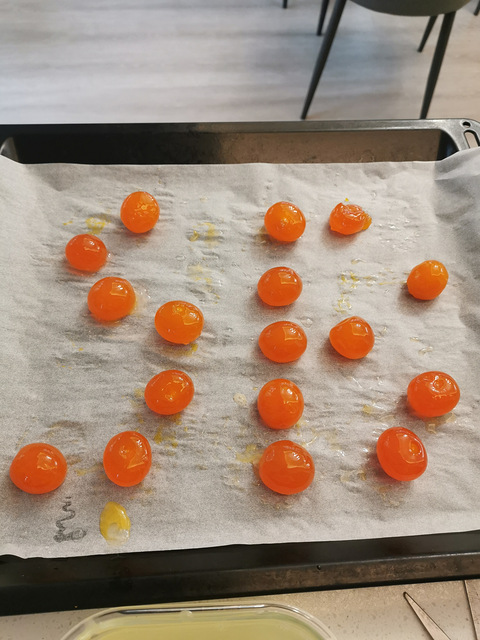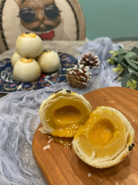 周末爸妈带着我的小豆豆都出去避暑去了,把我一个人丢在家里,不知道干啥,干脆就来做月饼先把材料准备好,所有的材料称好后,融在一起,把面粉用保鲜膜包好,松弛两个小时 在醒发面粉的时候就开始去现敲咸蛋黄 敲好后,挨个放盘子里放好喷上高度白酒除腥,放进烤箱里160度,烤8分钟 烤好后,等冷却以后,就开始把蛋黄和莲蓉称好,两者包在一起,做好准备工作,等面粉松弛好 松弛好的面团,就把刚刚包好的莲蓉和蛋黄包在一