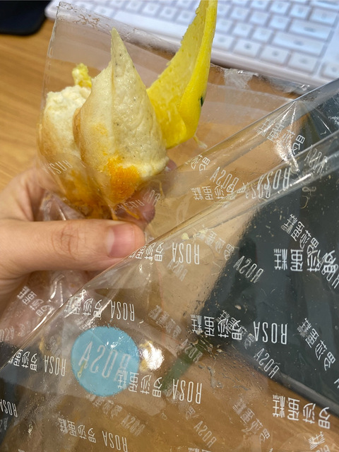 昨天晚上去人和星光天地里面罗莎蛋糕店买了两个面包,结果今天都快吃完发现被蛋皮盖住的地方都霉变,真的恶心的要死