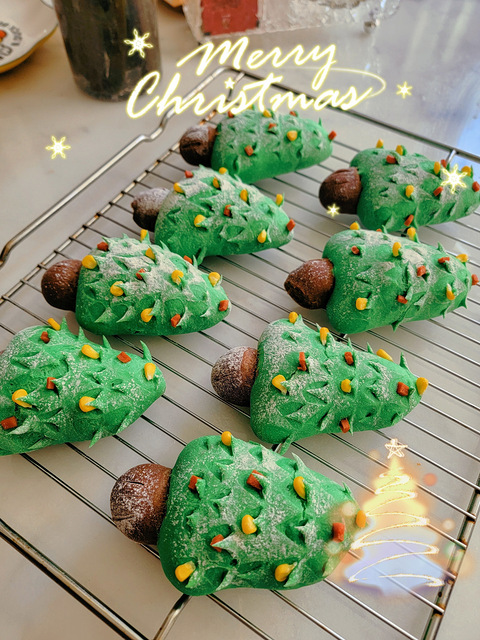老公一直喊我买圣诞树,然而我不想拼,圣诞树面包替上,氛围感拉满。