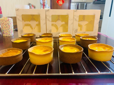 晚上闲的没事干就想着来做德式布丁挞,因为上次排队在观音桥那个大酥生去买有点贵,觉得不划算,所以这次我打算自己来做,其实也很简单,网上也有很多的配方,还说是网红,所以今天晚上我也就做了两个口味,一个可可味……一个原味,虽然网上也有半成品塔皮和挞液卖,但是感觉少了自己做的乐趣了