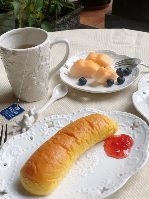 昨天小伙伴从海南回来,给带了蜜瓜和大芒果让我实现了蜜瓜自由总是有那么多小可爱投食,说好的减肥老是遇到绊脚石,讲真,蜜瓜真的好甜烤的排包里面本身夹了酸奶馅,但为了试试新做的草莓酱,还是舀了一小勺[萌萌哒R]烤肠是事先灌好煮熟了抽真空冷冻的,吃的时候和别的配菜一起煎一下,自己做的烤肠就是肉肉比较放心[ej=1F60F]