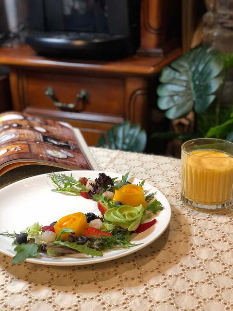 我正在参加【我的减肥餐】活动,随手晒美食赢征成健身千元私教课!https://go.cqmmgo.com/forum-174-thread-173931615796322152-1-1.html 充满春天气息的沙拉+南瓜苹果红椒奶昔:牛奶200ml、煮熟贝贝南瓜1/4个、苹果甜椒各1/2个:芝麻菜、苦菊、紫生菜打底,芒果牛油果切薄片摆成花朵形状,点缀草莓、蓝莓夏天就要来了,好紧张好好吃草,努力减肥