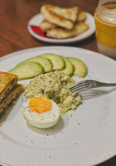 你们快试试这个很好吃鸭--洋葱(也可以选择黄洋葱切粒)牛油果(建议最好是已经熟软的,口感更好)鸡蛋(白水煮)沙拉酱适量(可以根据寄几的口味选择平常喜欢的沙拉酱品牌)还放了一丢丢美极鲜酱油最后摆盘,研磨黑胡椒粒提升BG[ej=1F60E][ej=1F60E]