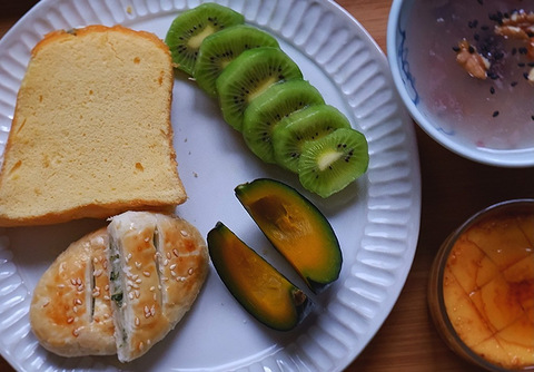 早啊[玫瑰]夹心蛋糕鞋底饼 水果蒸蛋 蒸贝贝瓜玫瑰酱坚果葛根粉羹