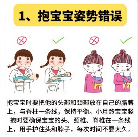 给新手爸妈们圈重点:任何月龄的宝宝都可以竖抱,但是一定要确保他们的头、颈椎、脊椎在同一垂直水平线上。 宝宝平躺时,头部要被稳稳托住;处于竖直姿势时,头部和颈部都要托稳。无论横抱还是竖抱,只要宝宝头部和胸部有足够的支撑,姿势就是对的,竖抱也是不会损伤脊椎的。