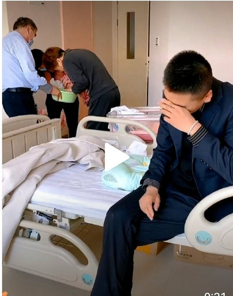 女子产后,长辈围着宝宝,老公询问生产经历心疼得在旁抹泪