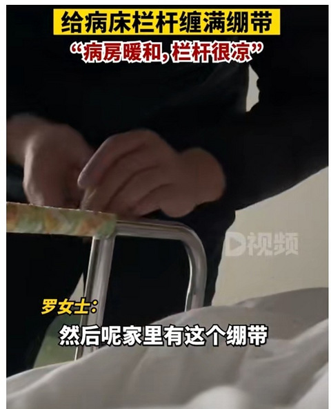 江苏无锡,一男子怕待产妻子着凉,用绷带将病床两边的护栏缠满,获网友称赞。当事人罗女士称,自己是宫缩,经常会用手抓栏杆,病房里有空调很暖和,但栏杆很凉,老公就用绷带10分钟缠满,真的很感动。