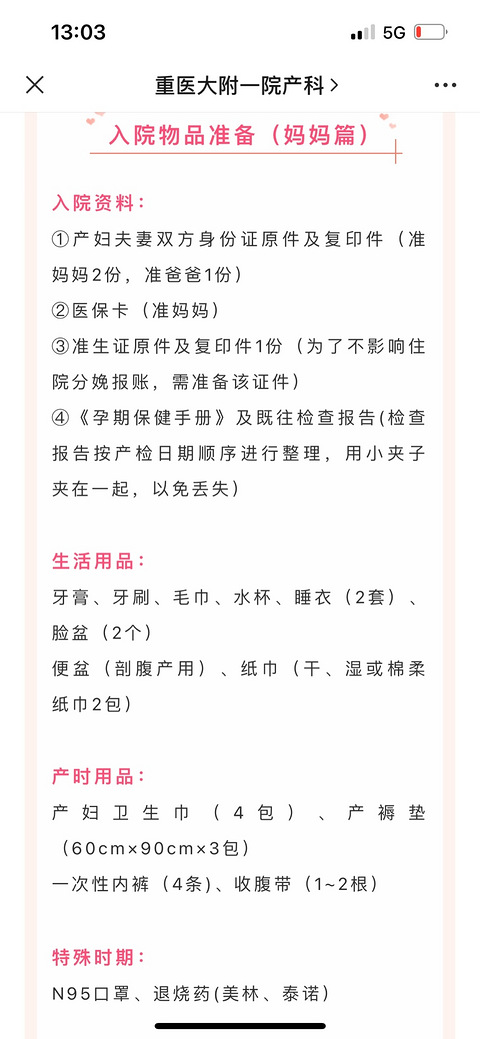 在重医附一院生娃的妈妈注意了,入院物品记得自备退烧药!