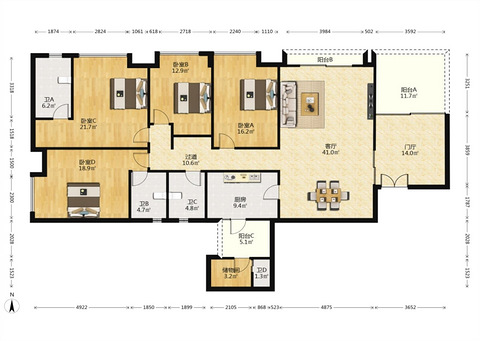 渝中区万科精装大平层小区:万科锦绣滨江面积:326平方米户型:5房4卫装修: 精装修