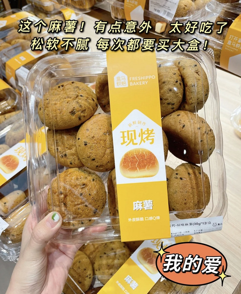 今天心血来潮,想和大家分享一下我经常在盒马买的那些好吃der!!除了生鲜之外 我每周都会去采购一些日常储备来看看资深盒马党都买些什么吧 现烤原味麻薯妈呀!我的最爱!软软Q弹太好吃了真的出乎意料的好吃