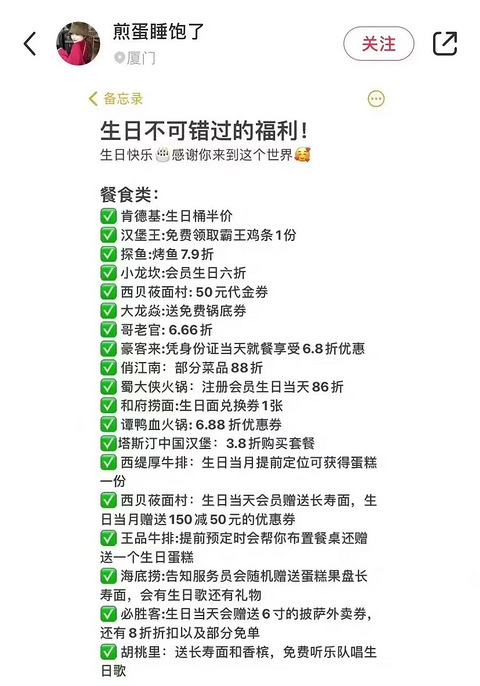 原来生日当天可以领这么多东西,很多人都不知道