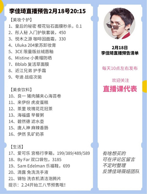 为大家带来了李佳琦2.18直播预告,商品清单来咯