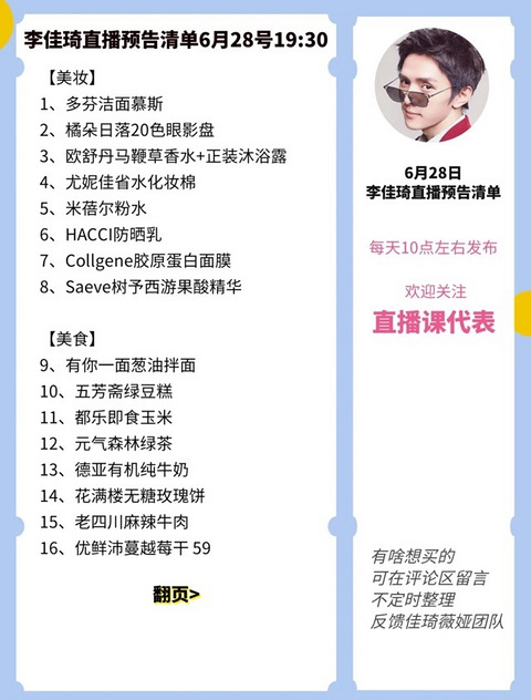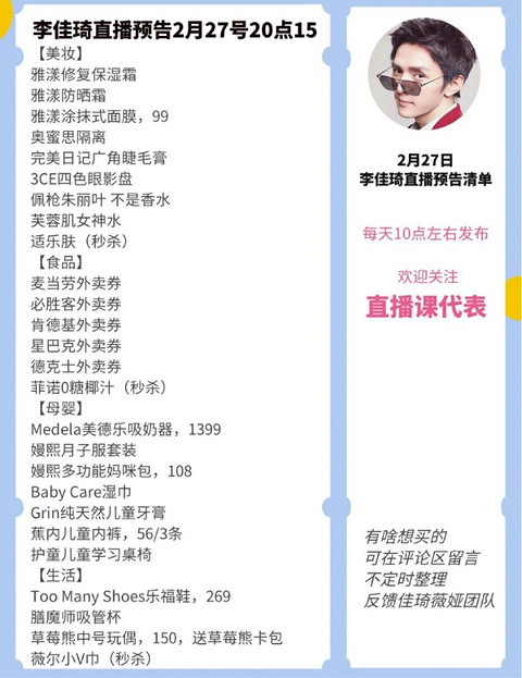为大家带来了李佳琦2.27直播预告,商品清单来咯