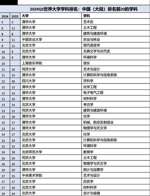 2024QS世界大学学科排名!中国大学8个学科进入世界前10
