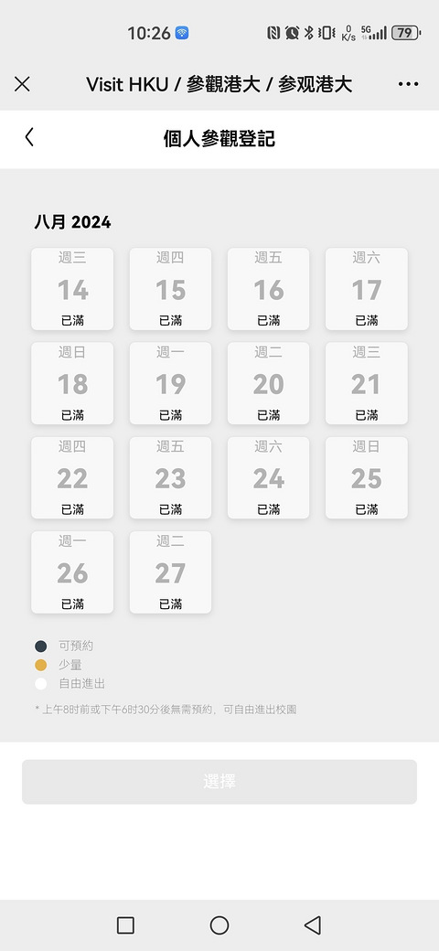 万能的购物狂,香港大学关注了公众号,计划本月下午半天时间去游览,但连续好多天都公众号显示预约已满,请教有什么预约攻略或者其它方法吗?谢谢