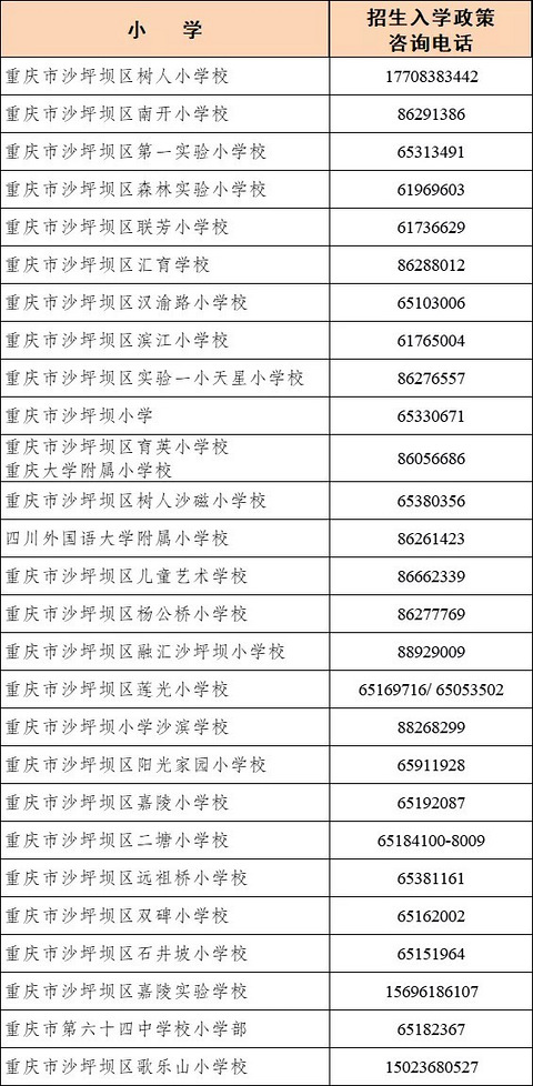 沙坪坝区2022年小学招生入学政策咨询电话