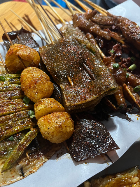 重庆的烧烤真的贵的伤心,又不好吃,又全是冻货,吃起全是调料味。今天到朋友家那边去,随便打卡了一家躺在我收藏夹里很久很久的烧烤店。先不说味道,一个肉串才2元,真的千值万值。整体吃下来就是那种古老的烧烤味道,浓的炭火香味,没得其他杂七杂八的香料味道。只有花椒,辣椒,盐巴,味精。这家的荤菜比素菜好吃,所有的荤菜都是鲜活,现串