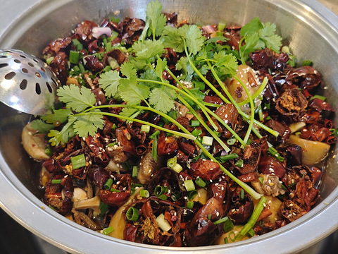 推荐指数标题有点夸张,但确实是我很喜欢吃的一家鸡,人均50大洋天治宣野椒鸡,有两个店,一个在东和春天,一个在龙头寺这老板也经常在抖音上卖惨,不过他家的鸡味道真的很不错有点类似于芋儿鸡,但是没那么多汤水,海椒非常香,中辣才够味配菜是香菇、干豇豆、芋儿香菇不知道是啥品种,比家里买的香一些,以往干豇豆很入味,今天不知道为啥今怎么进味,芋儿个个软糯来吃过很多次了,几乎都没翻过车,疫情严管期间还想办法点了他