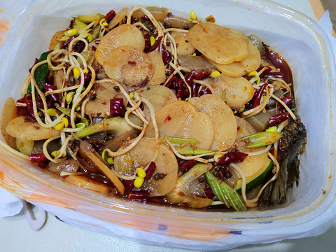 突然想吃烤鱼,这么热的天不想出去吃,就点了个外卖,3斤鱼+三个素菜,才51块钱,感觉比去店里吃还便宜[/11泪崩]外卖的味道也还不错,送来一个小时,腌入味了[/11偷笑]