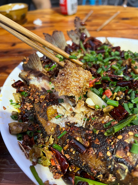 大渡口土著推荐的老馆子,本来想去吃鱼香肉丝的,但是被干烧鲫鱼长草了!鲫鱼外皮焦香,和鱼肉都包裹在一起,鱼肉又嫩嫩的,海椒特别香,总体要打5颗星