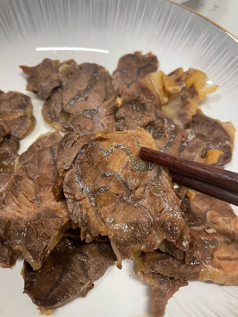 卖牛肉的老板娘教的牛肉好,自己做的,也真的好吃[/11微笑]腱子肉,买回来,可以切成几大块,码上盐,放3-4小时,夏天可以放冰箱冷藏[/11微笑]凉水洗一下,冷水下锅,煮一会除水捞起来,温水洗一下,温水[/11微笑]卤水,开了,丢进去煮40-1小时,我就是买的普通的自家卤[/11微笑]关火后,我是捞出来,切片了,又放回卤水里面泡起过几小时就可以吃了[/11微笑] 吃不完的,我就和卤水一起分装起来冷