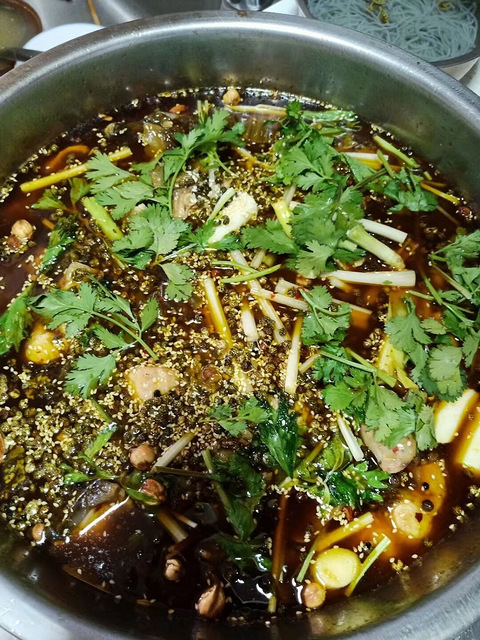 粉条用开水泡好后就放鱼下面打底,不用再下锅,这样劲度更扣弹,食材:青红泡椒,泡姜,老油,豆瓣,姜,蒜,泡菜,灯笼椒,青花椒,芝麻,白糖,香菜,芹菜,猪油,所有食材放下去炒好后再加水熬,鱼码佐料的时候不加料酒,直接加泡菜坛里的酸水,更入味和嫩,起锅后加鸡精,味精,淋油的时候再加一点花椒即可。谢谢大家观看,这这是个人做饭哈!