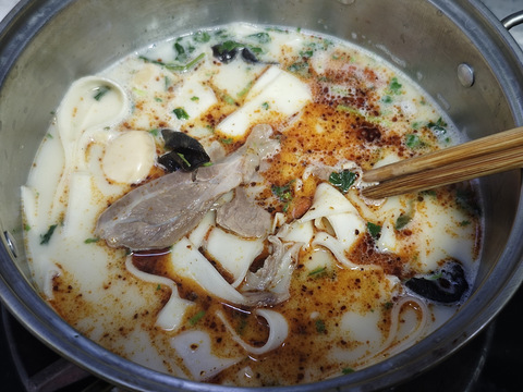 最近喜欢上了山姆的各种半成品面,价格确实不算便宜,吃了好几种了,大部分都挺喜欢今天来评下新上的羊肉烩面4份85.9 也就是21.5一份,有点小贵烩面貌似是河南的做法这汤色有点一勺三花淡奶的feel,汤底很浓郁,羊肉味也很浓,有一点稍微,但不至于很上头羊肉给的量还不算少,至少比兰州拉面多很多羊肉口感很嫩滑,配了3个鹌鹑蛋,这个面貌似是统一出的面条是皮带宽面,我挺喜欢这口感,我讨厌细面配的油辣子海椒,