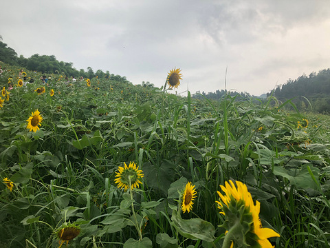 最近这几个周末都有带宝宝出去耍,摘蓝莓,看荷花,而昨天临时决定去北碚静观,只因为在豆音上看到推荐,说什么重庆最大的向日葵观赏地,好停车啥的,本来去之前朋友还说怕下雨什么的,因为昨天早上打了几颗雨点,但昨天的天气不是大太阳直晒,觉得不去又浪费了,又没找到其他地方,就说还是去嘛。然后就风风火火收拾东西去了。 从主城出发到那边开车要一个多小时,在快要接近目的地的时候就开启了长堵模式,终于在路边停车了,结