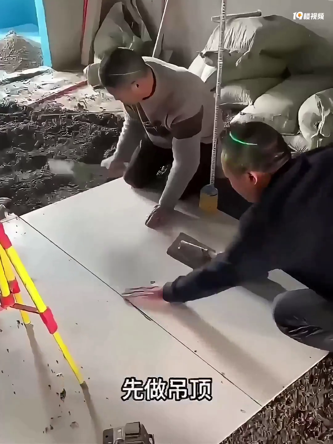 好多宝子们都在问是先铺砖还是先吊顶?个人建议是铺砖之前先吊顶哦~因为吊完顶以后地面会有许多钉子渣渣什么的,如果贴砖后再吊顶会刮花瓷砖这些,地膜贴再好施工的时候不注意也会翘边有损坏这些,而且吊顶完是很脏的,后期收拾起来也麻烦!先铺地暖还是先改水电?先装橱柜还是先吊顶?先装烟机还是先做橱柜?先铺地板还是先装门?先刷乳胶漆还是先装柜子?美缝什么时候做最合适?