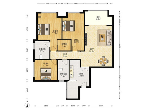 照母山精装修大平层小区:香港置地壹号半岛面积: 163平米户型:3房2卫装修: 精装修 600颗