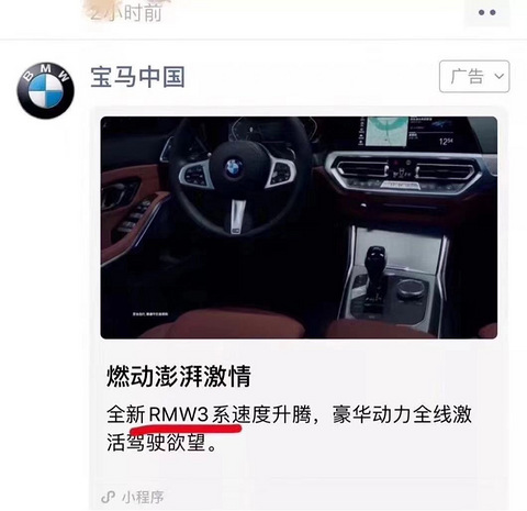 朋友圈广告这是怎么了?上次闹了奥迪的乌龙,这次宝马的英文名字也被写错了