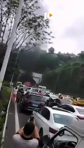 机场路,渝州隧道里一辆宝马燃起来了,火好大 洞口外排了一串车,浓烟滚滚 》》》朋友发出来的,当时一直在后面,抵到按喇叭。很想跟他平行,结果到隧洞还未追到,就已经燃了