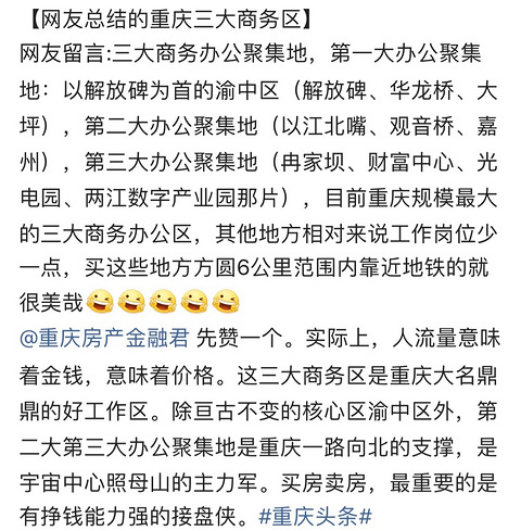 网友总结出的重庆三大商务办公聚集区,还有哪些商务聚集办公区