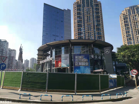 HELLO,胖哥又来跟大家摆龙门阵了,上次给大家分享过商社麒兴奔驰4s店现在在升级改造,备战2020升级计划了,现在时间已经过去了两个月了,胖哥又来看一下商社麒兴现在究竟改造成什么样子了。在外面看还是围起围挡的,不过外观上的变化还是非常明显了,上次来的时候感觉好像是内部装修,外部还是比较完整的。现在看来外部也开始动工了,脚手架跟围挡都已经立起来了,看来奔驰改造的进度也是飞快的!胖哥还是非常期待完美