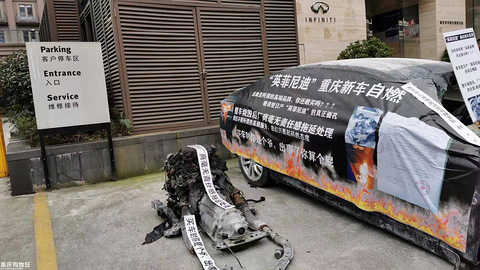 九滨路某家4S店门口摆了这东西,路过时看见后心里有点慌。记得英菲尼迪是和奔驰一起合作的,奔驰出的技术,但是貌似合作不是很愉快,现在大家都分崩离析,英菲最近的销量也一直没什么起伏,感觉还是产品换代没有跟上,拿得出手的应该就是QX50,Q50L都是7年前的产品,Q70那更是老爷爷级别的年龄了,但是看到这一幕,心头还是有点瘆,烧成这样晓得车里的人遭了没有哦,看得出来车主情绪是很激动的,不知道最后会如何处